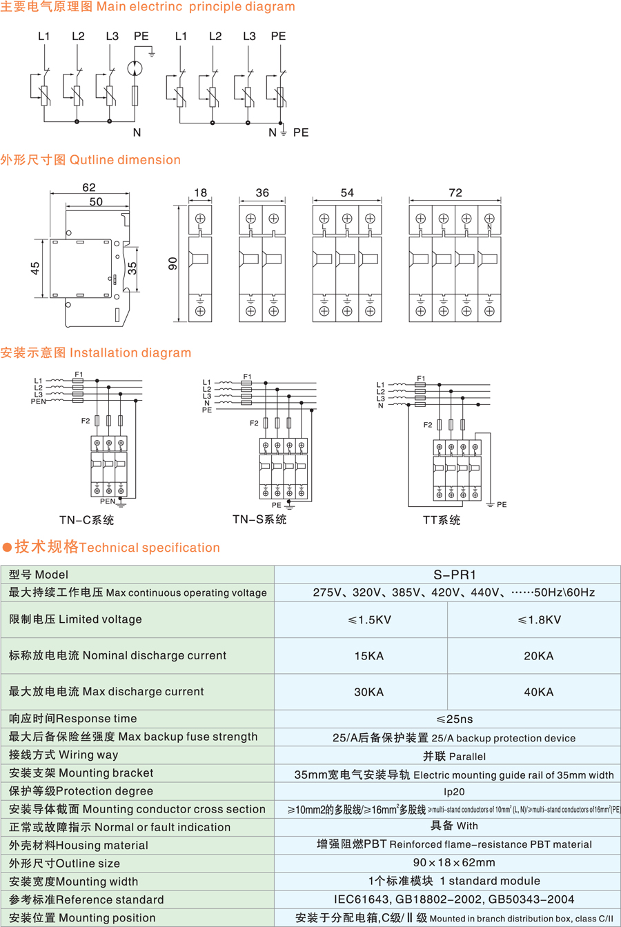 S-PR1电源电涌保护器(模块)