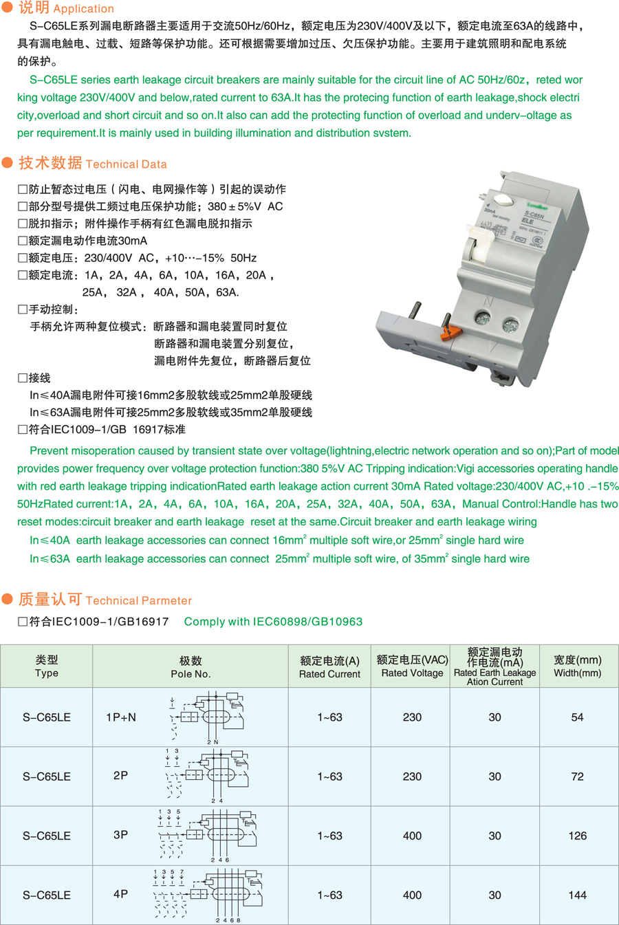 S-DPN-32系列漏电断路器(“相线+中性+漏电”)
