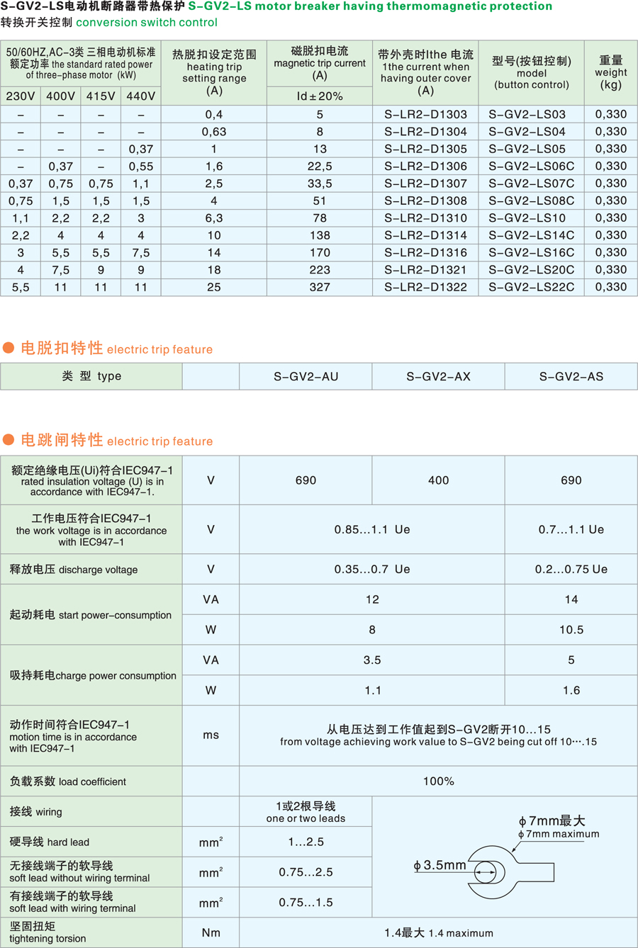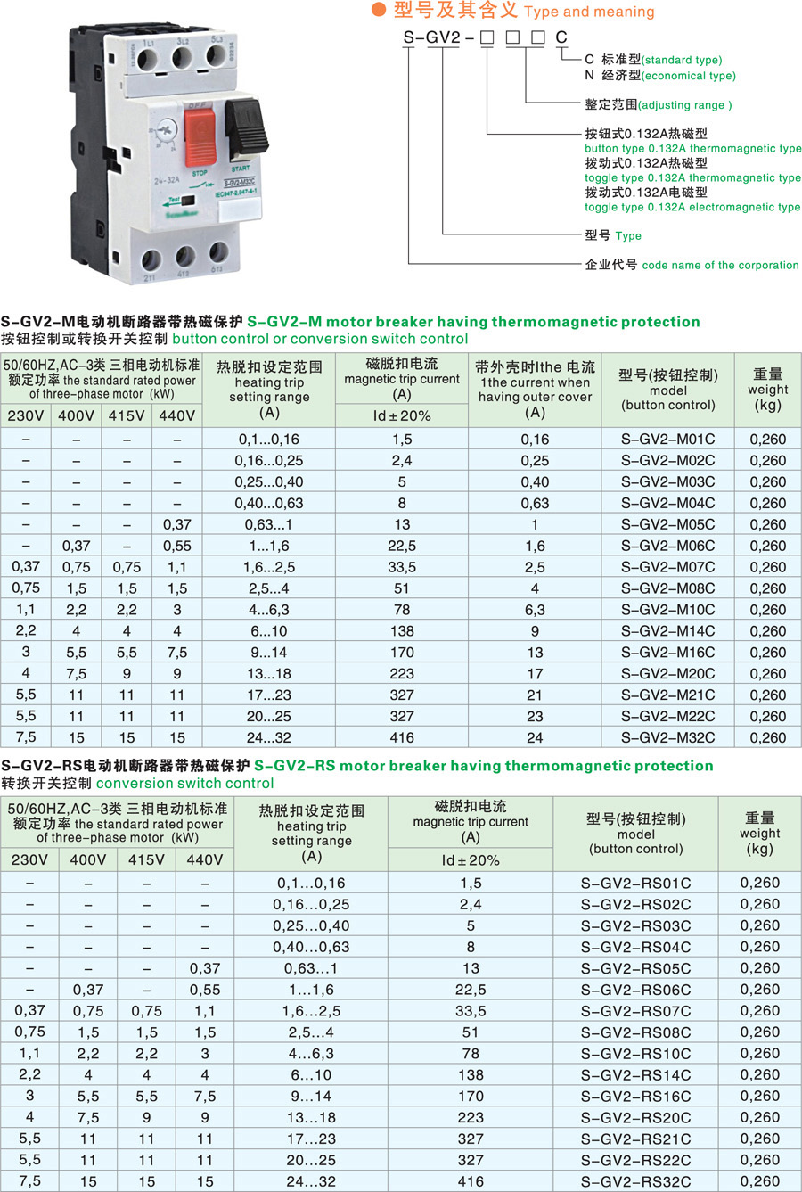 S-G V 2系列电动机断路器