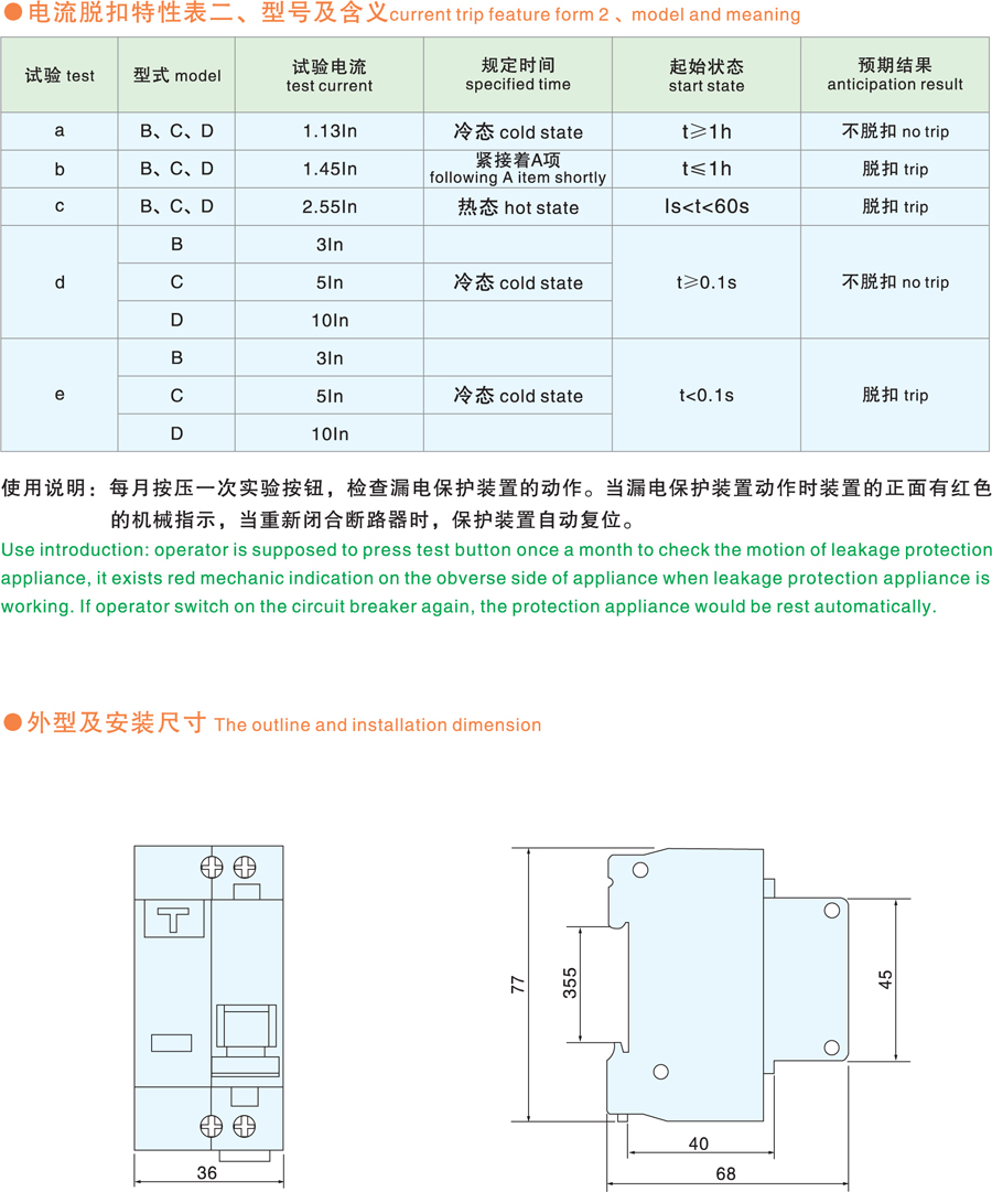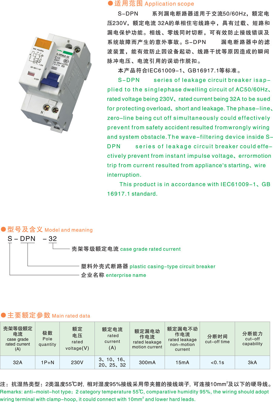 S-DPN-32系列漏电断路器(“相线+中性+漏电”)